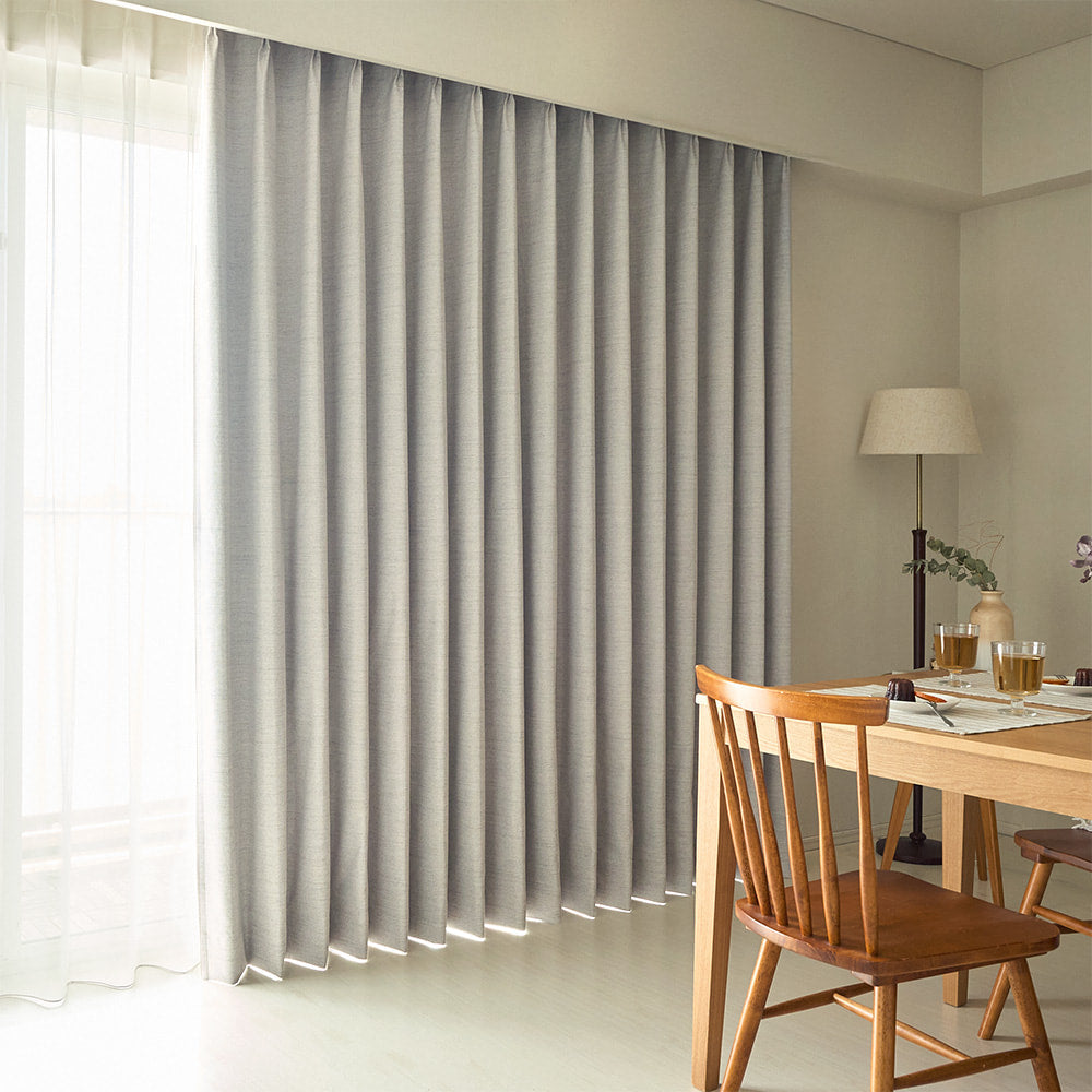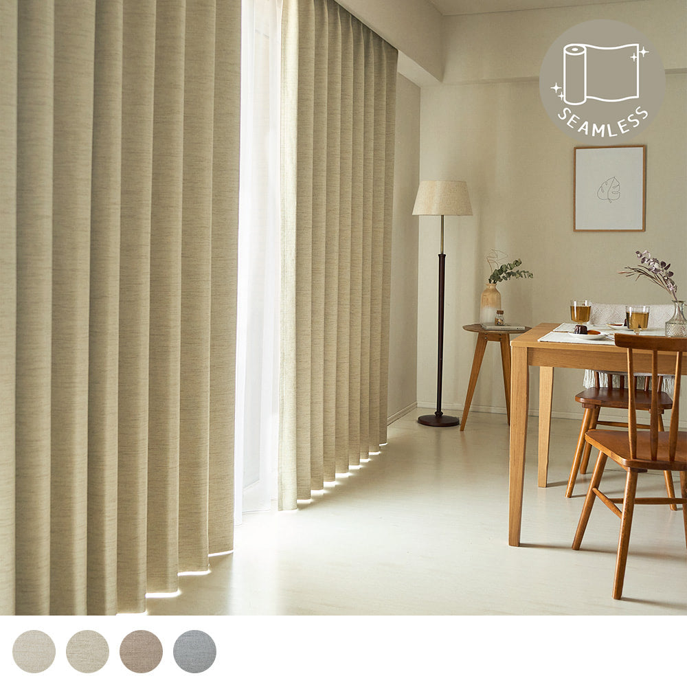大好評の完全遮光×シームレスシリーズに、天然素材ライクな新アイテムが登場です。さらっとした素材感と、横方向に節(ふし)感が表現されたデザインが、広窓いっぱいにナチュラルな装いをプラス。もちろん、完全遮光なので機能性もばっちり◎ 機能性も見た目も妥協しないあなたにぴったりのオーダーカーテンです。